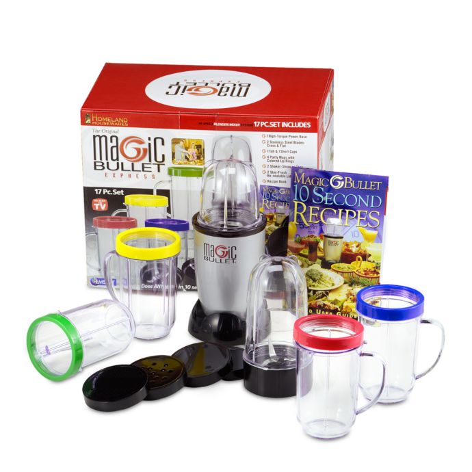 Free delivery and returns on eligible orders. Buy The Original Magic Bullet Deluxe (17 piece system) Blender, Mixer & Food Processor (As Seen on High Street .The steamer lid and cups are dishwasher and microwave safe. Colour: Black Style Name: Magic Bullet 17 Piece Set Technical Details Brand NUTRiBULLET.Wishing now we had bought the Nutri Bullet because I can see we'll use ours every single day for one thing or another. Helpful? Yes 12 .As Seen On TV MBR1701 Magic Bullet™ Express 11Piece Blender Set Sears Magic Bullet The Original Magic Bullet Blender and Mixer 250W Silver for 1700w Magic Bullet N17I001 Nutribullet rx Blender Blade Black..Add to Idea Board. $39.99. Magic Bullet® 11Piece Personal Blender and Mixer Set in Silver $19.99. The Original Baby Bullet™ Storage Kit..It's a world of treats in one little machine chop, blend, and mix your way to tasty fun with the original kitchen magician. From the ManufacturerPowered by .There's good reason to call this Blender Mixing System magic. It seems to do everything. Only as big as a coffee mug, this doitall wonder replaces the blender, .*Advertiser Disclosure. The Original Magic Bullet MBR1701 17Piece Blender Posted 263 days ago. Issue or Expired? Alert Us. Offer Info +..Shop Magic Bullet The Original MBR1101 online at Macys.com. The personal, versatile countertop magician that works like magic. With the MAGIC BULLET you .The As Seen on TV Magic Bullet 17piece set is a handy countertop appliance that can chop, mix, blend, whip, grind, and more. It's great for making refreshing